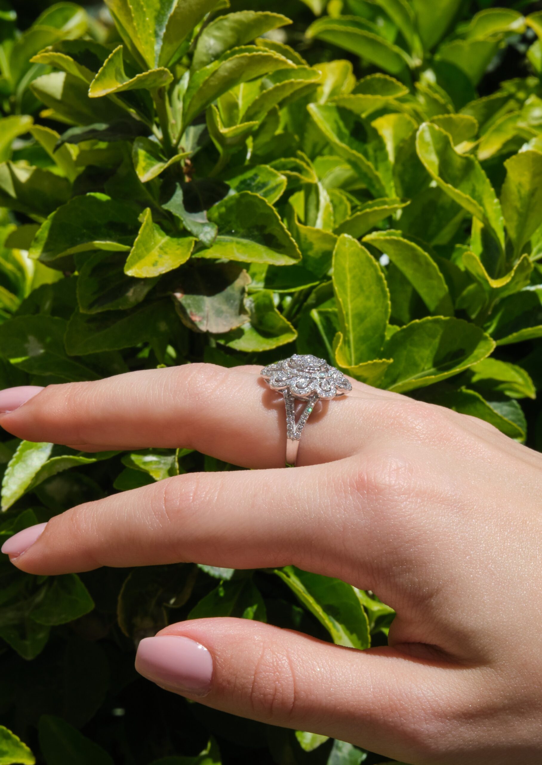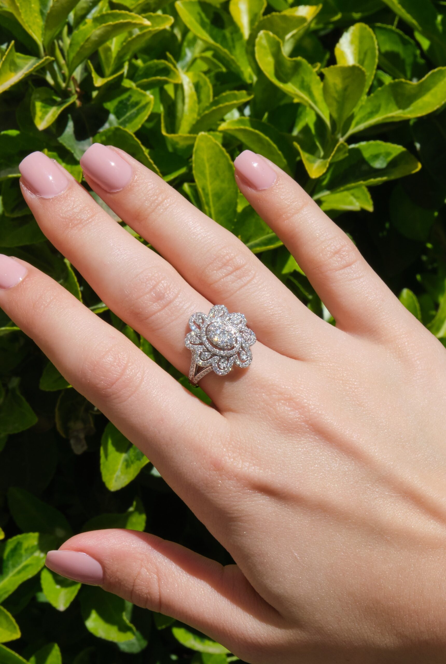 Fantezi Yüzük 0.76ct Renk:F-G Berraklık:VS-SI 5.12gr 14 Ayar Beyaz Altın