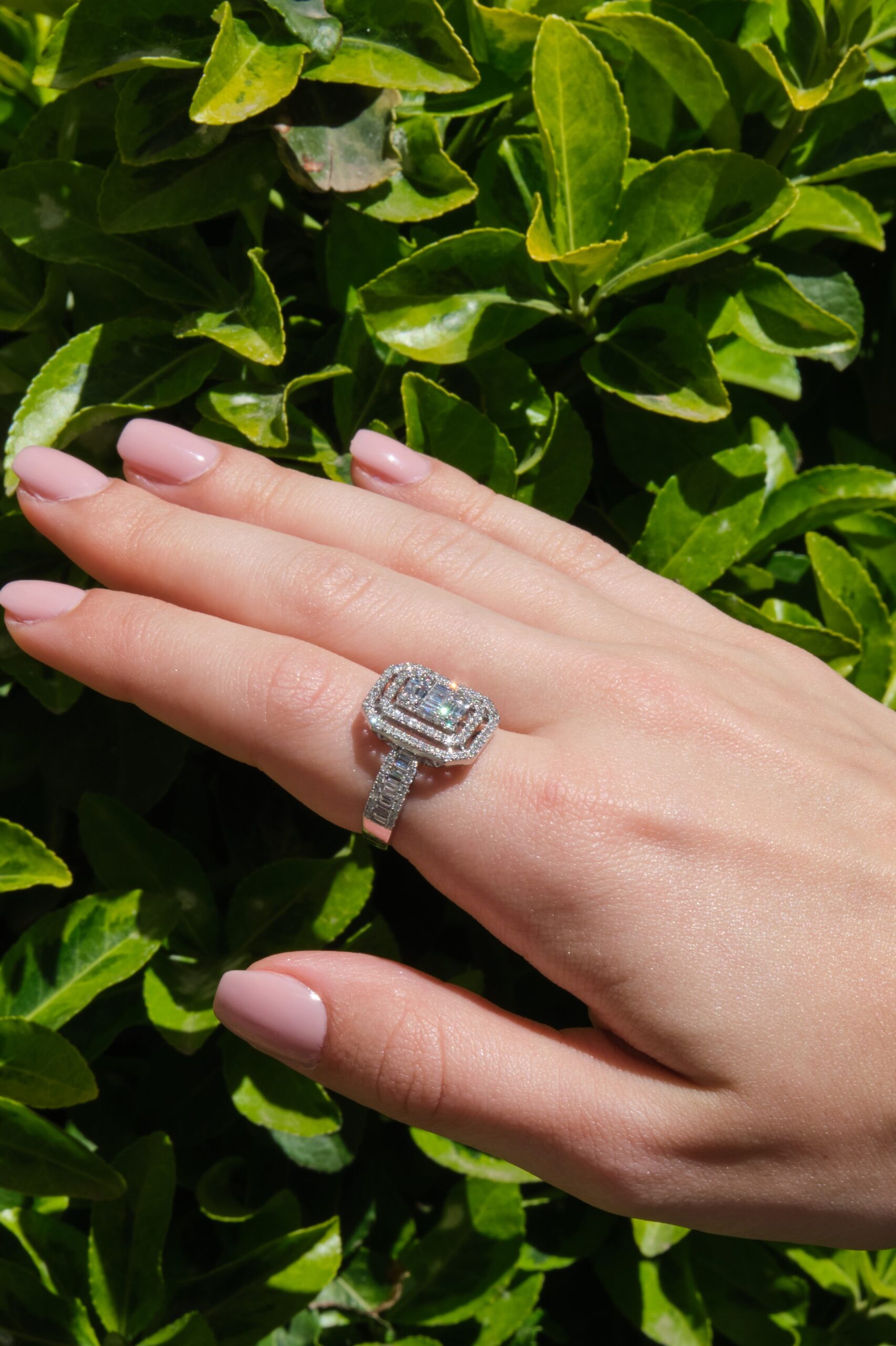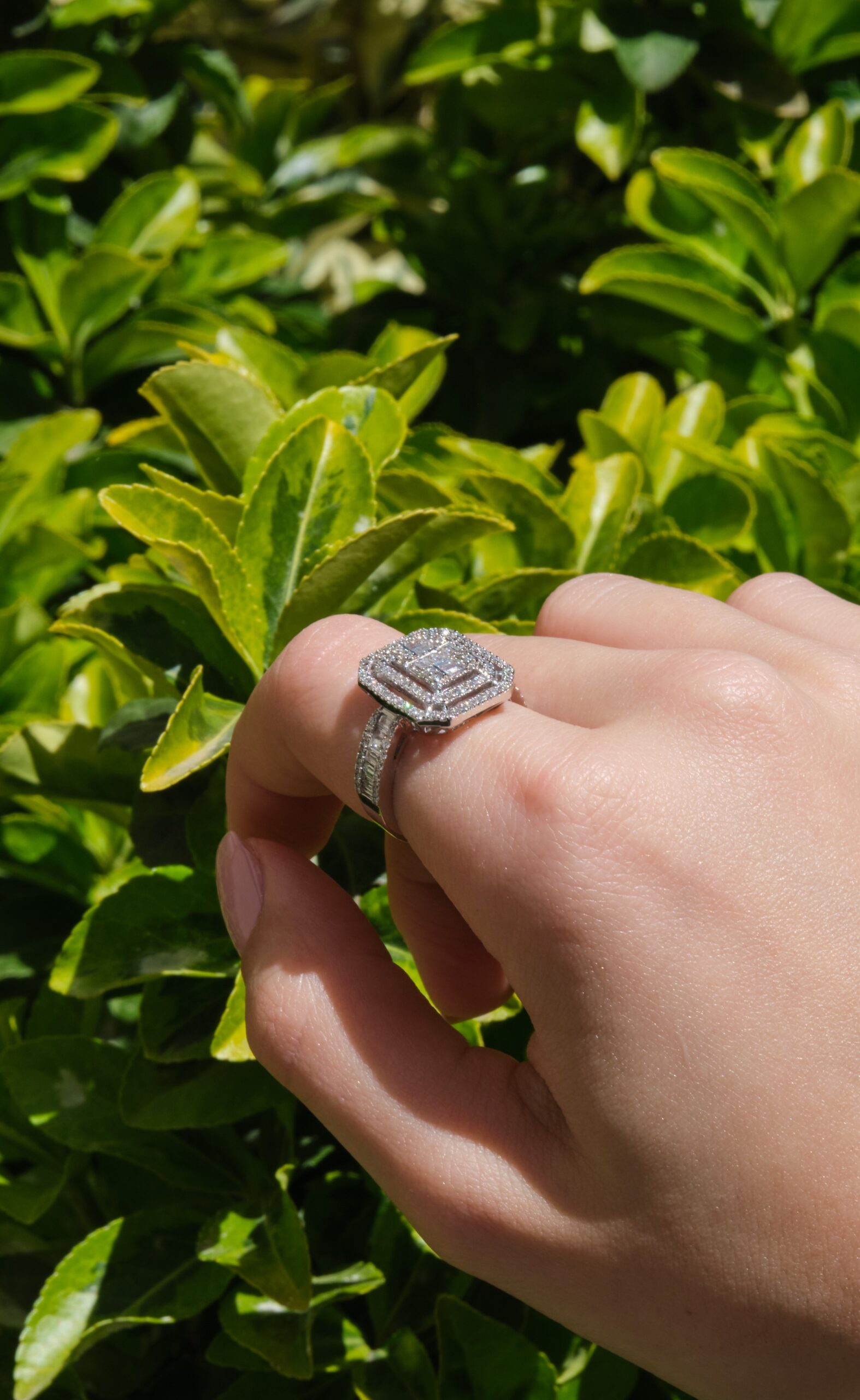 Fantezi Baget Yüzük 1.18ct Renk:F-G Berraklık:VS-SI 5.07gr 14 Ayar Beyaz Altın